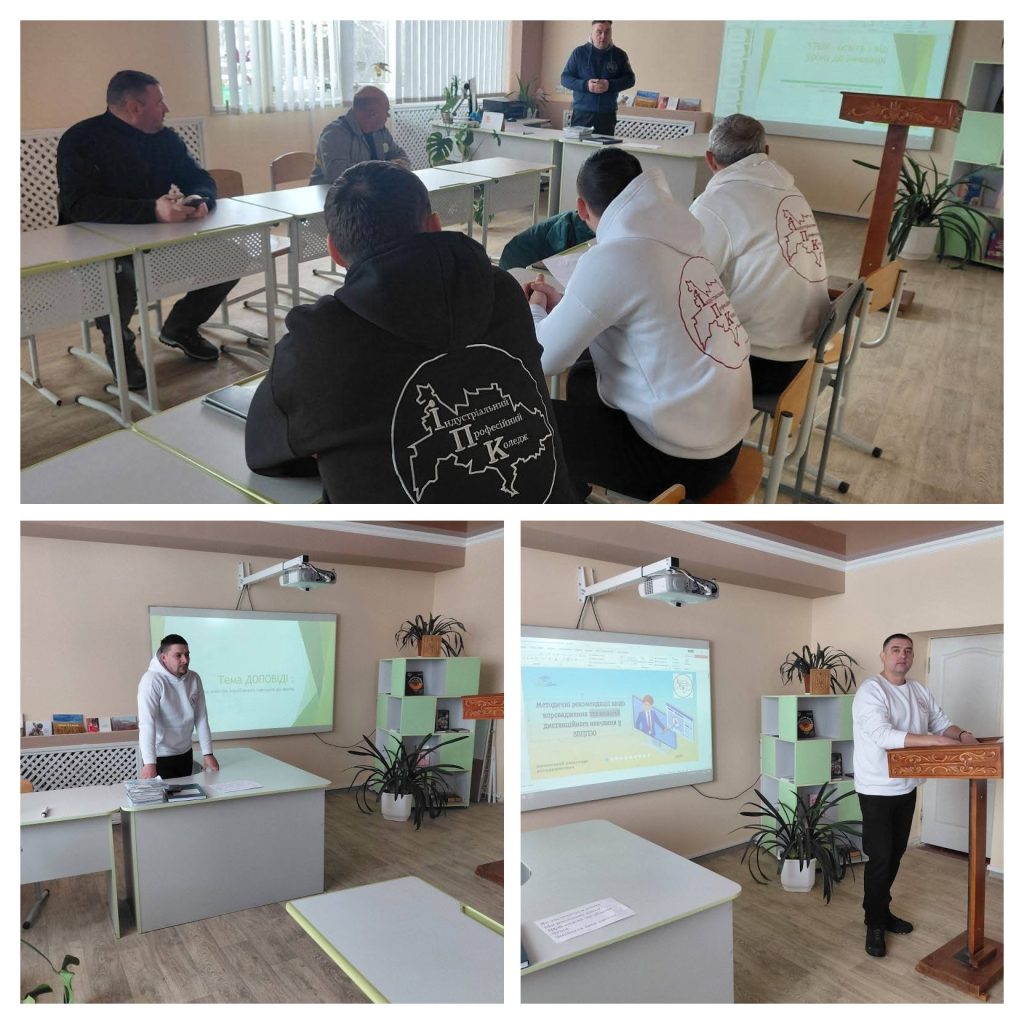 Викладач спеціальних предметів Валентин Сидоренко виголосив доповідь ” Використання опорних конспектів на уроках спецпредметів”.