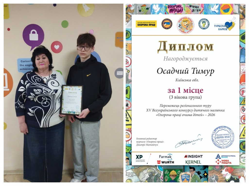 Студент Індустріального професійного коледжу Осадчий Тимур здобув 🥇 І місце у Всеукраїнському конкурсі «Охорона праці очима дітей – 2026»!